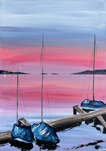 Inspiriert von all den wunderschönen Sonnenuntergängen am Zürichsee ist dieses Bild entstanden. Abgedeckte, schlafende Boote, die eine wundervolle Ruhe ausstrahlen.