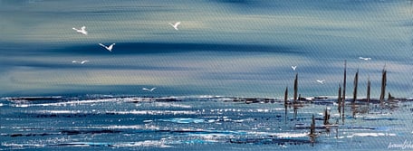 Die Bewegung im Meer, nur durch die Spachtel Akzente erzeugt.