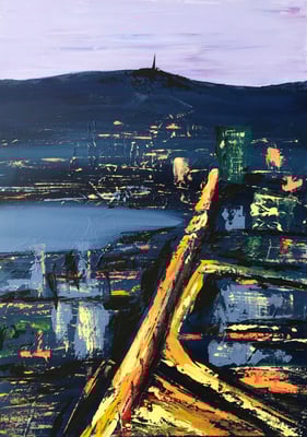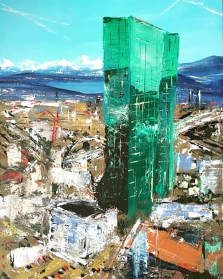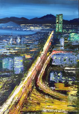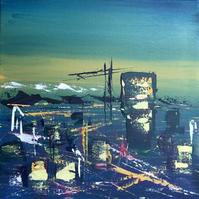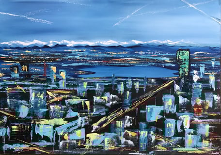 In diesem Jahr setzte ich verschiedene Grossstadt Motive mit der Spachtel Technik um. Tiefe, Weite und Vielseitigkeit standen im Vordergrund.