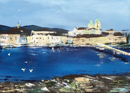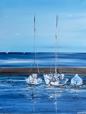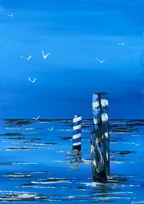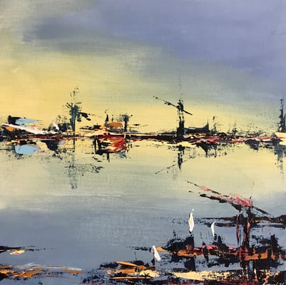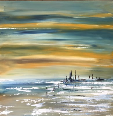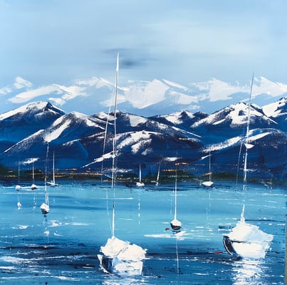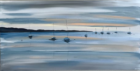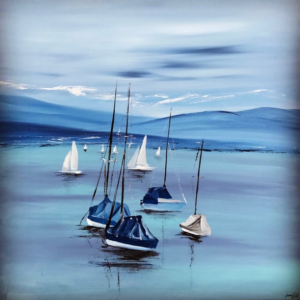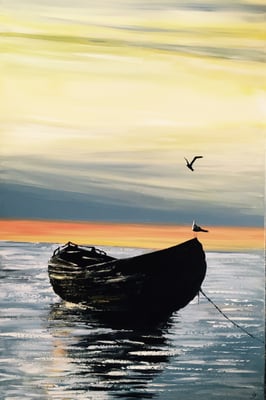 Boote, die auf dem Wasser schaukeln male ich mindestens genauso gern wie Berge in der Dämmerung. Seen, Flüsse oder das Meer zu malen ist dennoch eine Herausforderung. In diesem Jahr gibt es mehrere Bilder, die Boote auf dem Wasser zeigen.