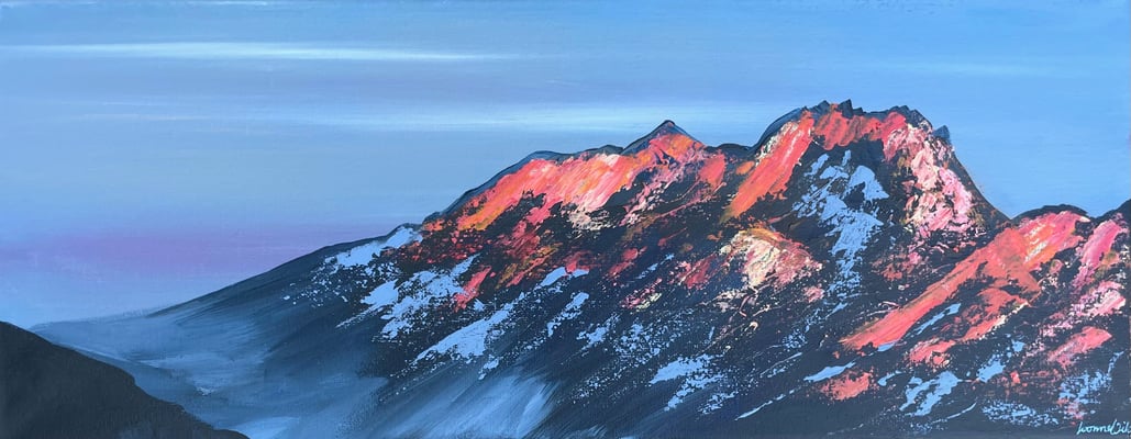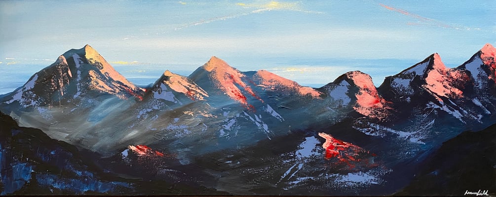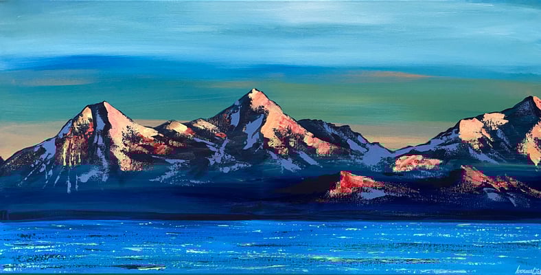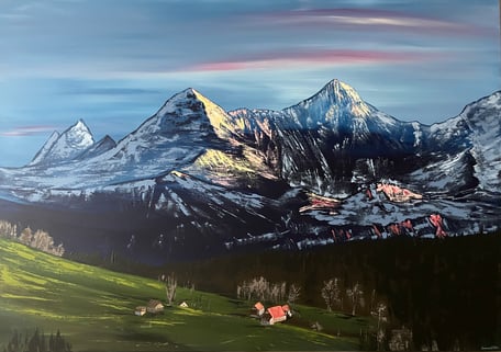 Leuchtende Berge, Sonnenaufgang in den schönsten Bergketten der Schweiz und schneebedeckte Berglandschaften. Diese Motive haben mich dieses Jahr besonders berührt und so habe ich versucht diese Naturschauspiele auf der Leinwand zum Leuchten zu bringen.